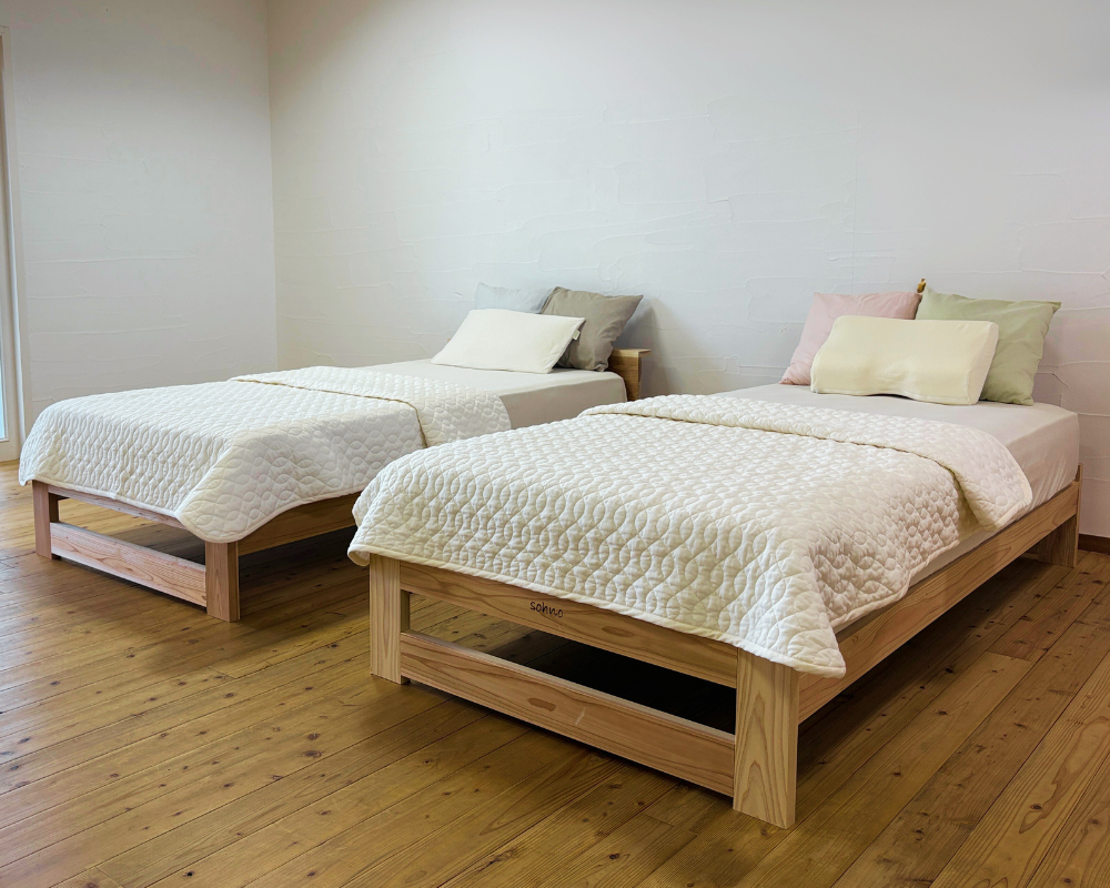 睡眠は脳やからだの疲労を回復させるために行います。からだに直接触れるものは、やさしく心地よい素材である必要があります。通気性、吸湿性に優れ、さわやかな素材の寝具を提案していきたいと思います。
